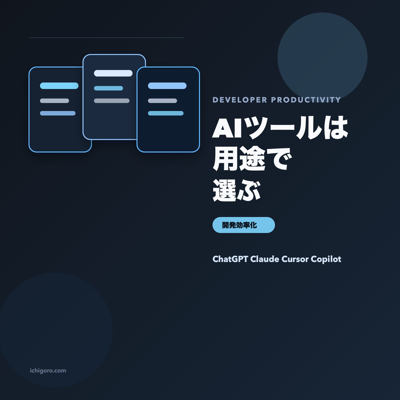 2 本目は、ChatGPT、Claude、Cursor、GitHub Copilot を「ブラウザ中心か IDE 中心か」で選ぶ図にしました。比較表の前に置くことで、読者が自分の分岐を先に判断しやすくなります。